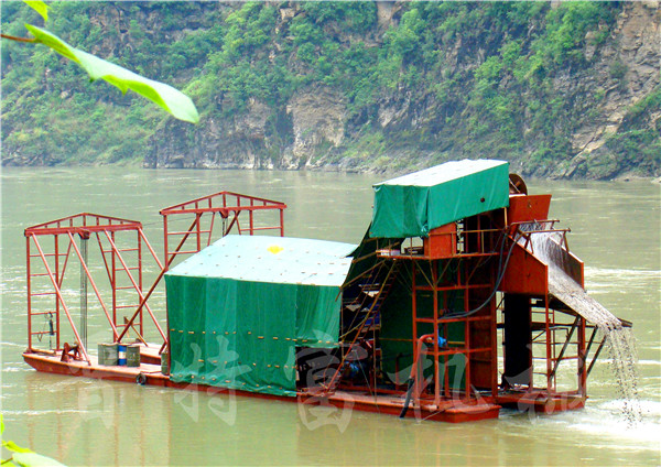 晉特富環(huán)保科技淘金船是一種建造在工程平底船上并漂浮于水面上的采選聯(lián)合機(jī)組,它一般包括挖掘、洗礦、選礦、尾礦排棄以及發(fā)電、供水、供電、橫移等設(shè)備。